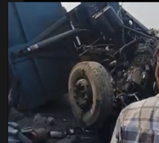 जबलपुर-भोपाल हाईवे पर दर्दनाक हादसा, हाइवा गिरने से कार चकनाचूर, बाइक भी दबी