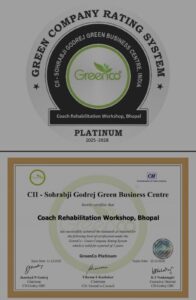 प्लेटिनम रेटिंग,CII द्वारा जारी ग्रीन सर्टिफिकेशन की यह सर्वोच्च रेटिंग पश्चिम मध्य रेल के सवारी डिब्बा पुनर्निमाण कारख़ाना, भोपाल को...