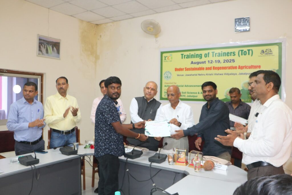 जवाहरलाल नेहरू कृषि विश्वविद्यालय, जबलपुर के कुलपति डॉ. प्रमोद कुमार मिश्रा की प्रेरणा से मृदा विज्ञान एवं कृषि रसायन शास्त्र विभाग और आसा, भोपाल के संयुक्त तत्वाधान में टिकाऊ खेती विषय पर 8 दिवसीय प्रशिक्षण कार्यक्रम का भव्य समापन हुआ।