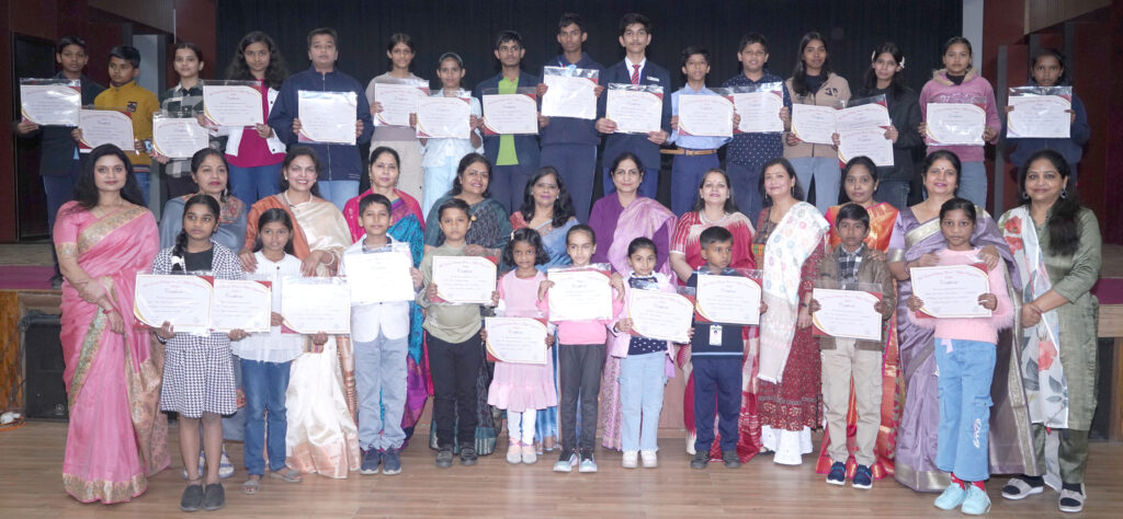 पश्चिम मध्य रेल महाप्रबंधक एवं महिला कल्याण संगठन की पदेन अध्यक्षा श्रीमती शोभना बंदोपाध्याय द्वारा मुख्यालय एवं तीनों मण्डल स्तर पर आयोजित निबंध एवं ड्राइंग-पेंटिंग प्रतियोगिताओं में विजेता कुल 48 बच्चों को पुरस्कृत किया गया। इस अवसर पर पश्चिम मध्य रेलवे महिला कल्याण संगठन की अन्य पदाधिकारियों में सचिव श्रीमती रेनू गौतम सहित अन्य कार्यकारी सदस्याएं श्रीमती निशि सिंह, श्रीमती माधवी विजय कुमार, श्रीमती नीरू कुमार, श्रीमती वंदना वर्मा, श्रीमती प्रीती खोरना, श्रीमती सारिका गुप्ता, श्रीमती मधु एवं श्रीमती नीलम मीणा उपस्थित रहीं। पश्चिम मध्य रेल महिला कल्याण संगठन द्वारा मुख्यालय एवं तीनों मण्डल स्तर पर निबंध एवं ड्राइंग-पेंटिंग प्रतियोगिता आयोजित की गई थी। इस प्रतियोगिता में पमरे के मुख्यालय एवं तीनों मण्डलों पर कार्यरत रेल कर्मचारियों के बच्चों ने बढ़-चढ़ कर भाग लिया। इन निबंध एवं ड्राइंग-पेंटिंग प्रतियोगिताओं में मुख्यालय स्तर पर 26 बच्चों एवं मण्डल स्तर पर 22 बच्चों सहित कुल विजेता 48 बच्चों को महाप्रबंधक एवं महिला कल्याण संगठन की अध्यक्षा श्रीमती शोभना बंदोपाध्याय द्वारा प्रशस्ति पत्र देकर पुरस्कार प्रदान किया गया। रेलवे कर्मचारियों के बच्चे जीएम से मिलकर तथा उनके हाथों प्रशस्ति पत्र पाकर बहुत उत्साहित नज़र आये। इस ख़ुशी के पल में कार्यक्रम में उपस्थित उनके माता/पिता एवं परिवार के सदस्यों ने बच्चों की हौंसला बढ़ाया।*जनसंपर्क विभाग