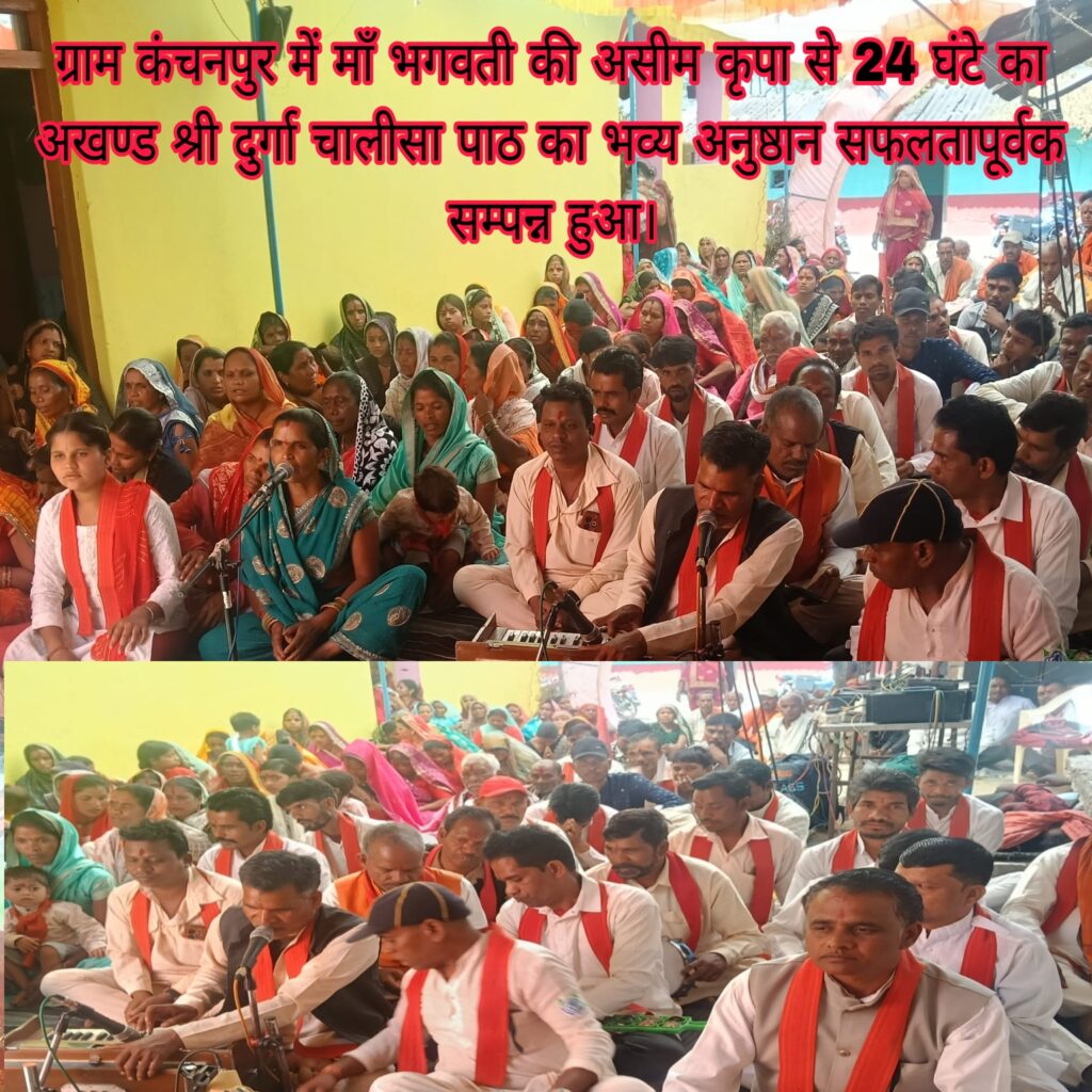 चैत्र नवरात्रि के पावन पर्व के तृतीय दिवस की शुभ बेला में ग्राम कंचनपुर में माँ भगवती की असीम कृपा से 24 घंटे का अखण्ड श्री दुर्गा चालीसा पाठ का भव्य अनुष्ठान सफलतापूर्वक सम्पन्न हुआ